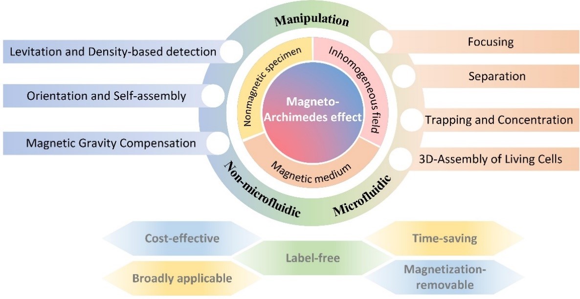图2. 基于磁阿基米德原理的非标记磁操控方法与技术