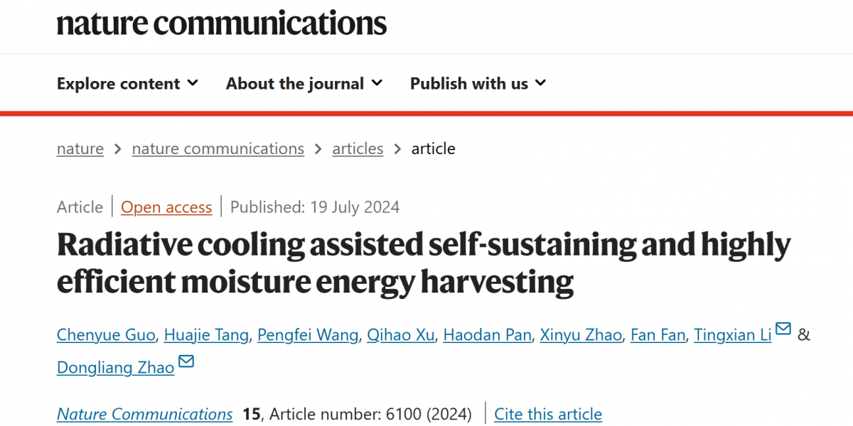 ITEWA团队提出辐射致冷辅助实现自维持高效湿气发电