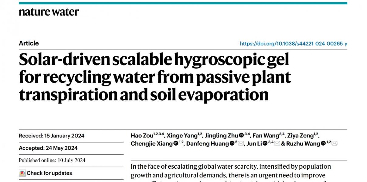 王如竹团队提出太阳能驱动水凝胶空气取水材料,助力温室水循环和再利用