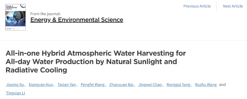 ITEWA团队在高效太阳能空气取水技术研究取得新进展