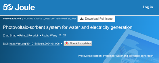 王如竹教授团队提出用于水电共生的光伏-吸附剂系统