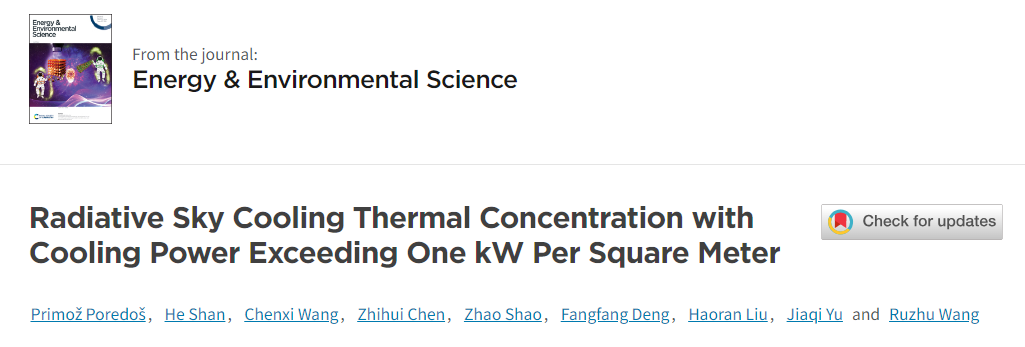 王如竹团队提出辐射制冷热集中策略,实现制冷功率超过千瓦每平米