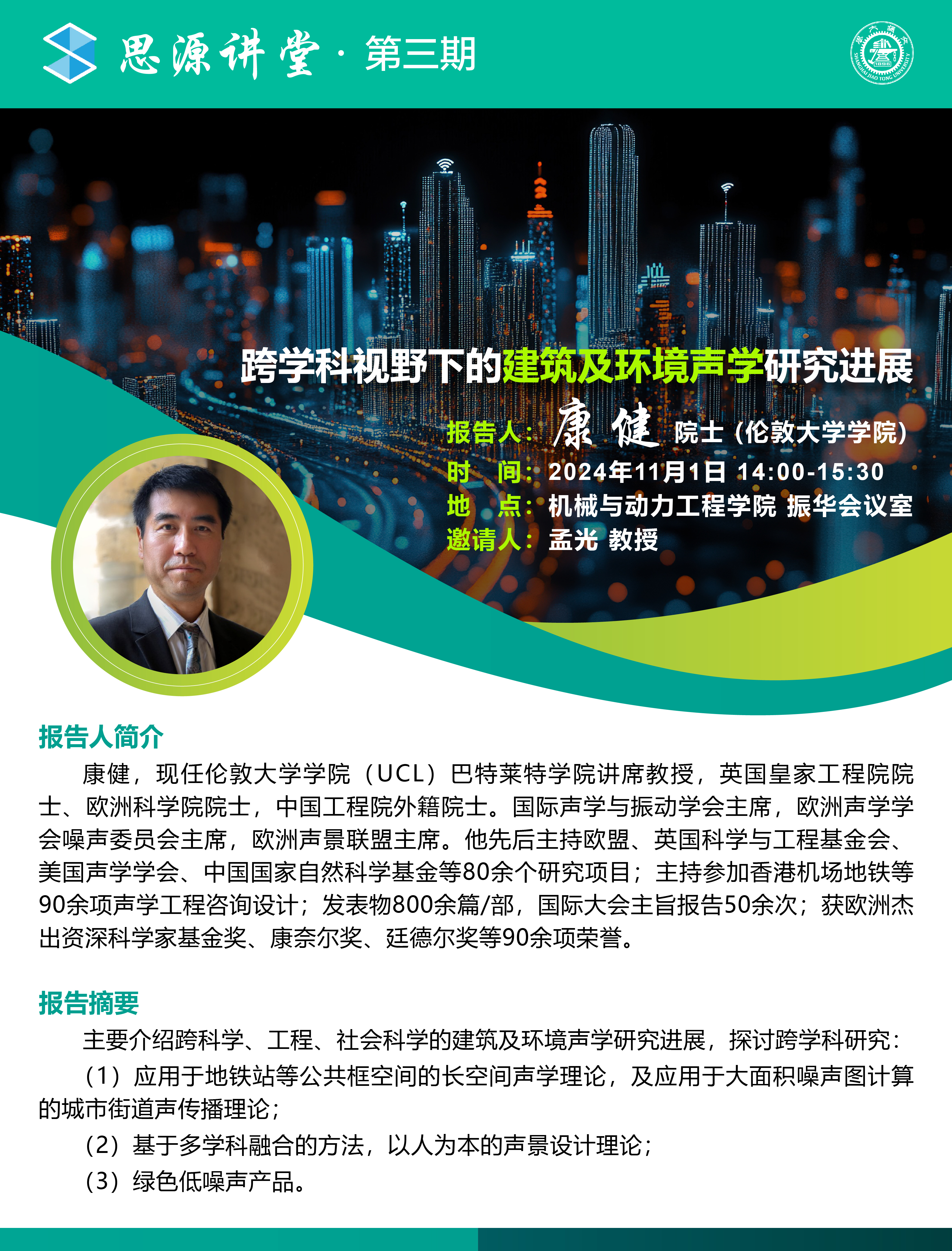 题目:跨学科视野下的建筑及环境声学研究进展