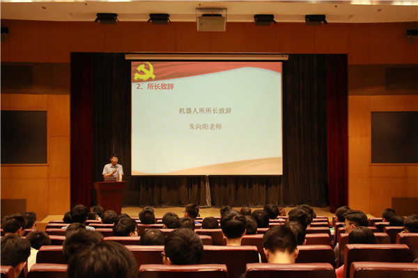 会议伊始,朱向阳代表系所老师对新同学的到来表示欢迎。他介绍了机器人研究所的历史渊源和发展现状,并勉励同学们在导师的指导下,利用机器人所良好的科研平台,努力将自己培养成为行业领域的领军人才。