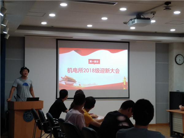 在迎新会上,刘成良代表系所老师对新同学的到来表示欢迎。他从交大和机电所的历史讲起,通过生动形象的例子,从做人、做事、做学问等多个方面和现场的新生分享了自己宝贵的人生经验,他勉励每一位同学都应该有一种“冲劲,牛劲,狼劲”,充分利用交大的时光,杜绝散漫习惯,勇于思考,大胆创新,以饱满热情投入到新的科研学习中,为团队贡献自己的力量,再续机动和交大的辉煌。除了学习科研,刘老师还亲切的勉励同学们在学习工作之余注意培养自己的心智,做一个心态阳光的人,为自己和身边的家人、朋友、同学和老师带来快乐。