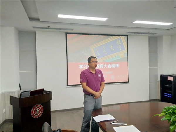 接着召开的是主题为“学习全国教育大会精神”的9月组织生活会。支部同志通过观看全国教育大会新闻视频,聆听习近平同志会上重要讲话,学习全国教育大会精神。习近平同志提出“优先发展教育事业”、“培养德智体美劳全面发展的社会主义建设者和接班人”、“加强教师队伍建设”、“坚决破除制约教育事业发展的体制机制障碍”和“加强党对教育工作的全面领导”五大方针,从党和国家事业发展全局的战略高度,系统总结了我国教育事业发展的成就和经验,深刻分析了教育工作面临的新形势新任务,对加快推进教育现代化,建设教育强国,办好人民满意的教育做出了全面部署,动员全党全国全社会共同努力。