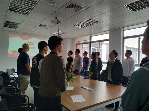 大会伊始,全体党员起立,奏唱国歌。在庄严的国歌声之后,大会就积极分子张伟的入党问题进行了讨论。张伟从思想、学习、科研和生活等方面向支部汇报了考察期内的主要表现,表达了自己向党组织靠拢的决心, 经支部大会讨论,支部党员投票表决,全票通过接收张伟为中国共产党预备党员。郭莉对张伟入党表示祝贺,希望他铭记责任,不忘初心,在今后的学习生活中能够继续秉持“为人民服务”的理念,在各方面发挥党员的先锋模范带头作用。