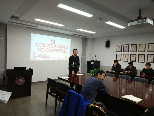 随后,党支部分别对周耀东、王勇强、杨汉敏三位同学的转正问题展开讨论,三位预备党员分别汇报了预备期以来自己在思想、理论学习、实践等方面取得的成果。结合考察人对三位同学的考察意见,与会正式党员进行无记名投票表决。根据投票结果,同意三位同学转为中共正式党员。