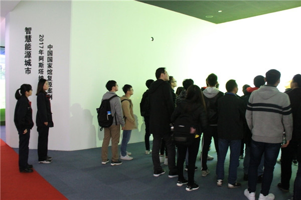 在国画激光投影机展厅,上电支部党员带领交大学子体验“智慧能源城市”2017年阿斯塔纳世博会中国国家馆复原案例、虚拟现实高端体育运动系统、CAVE解决方案、虚像/实像飞行模拟仿真系统、大型视景弧形解决方案、多媒体互动教学解决方案等先进产品及解决方案。同学们被一项项先进技术所吸引,并不时向带队参观的上电党员提问。