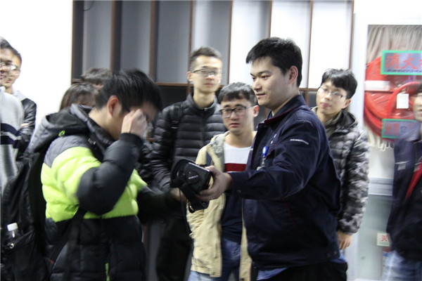 在技术中心,科研人员向交大学子介绍了上电所研发的一系列新技术以及在刚刚闭幕的珠海航展上展出的上电产品,并指导同学们亲身体验VR技术在航空电器上的应用实例。