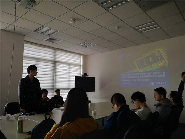 与会同学就学习主题开展了交流讨论。汽车发动机所研究生党支部李黄河作为新生党员做学习分享。李黄河基于改革开放四十年中国入世十七年这个宏观背景下展开阐述,详细介绍了2018年中国改革发展史上的两件大事,分别是坚持两个毫不动摇以及习近平总书记在首届国际进口博览会开幕式上的主题演讲,支持长江三角洲区域一体化发展并上升为国家战略。他深入介绍进博会的背景,阐述进博会的成功举办对国内以及国际所产生的深远影响。