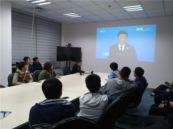 首先,大家集体观看习近平总书记在首届中国国际进口博览会开幕式上的主旨演讲视频。习近平在进口博览会开幕式上强调,各国应该坚持开放融通,拓展互利合作空间,各国应该坚持创新引领,加快新旧动能转换,各国应该坚持包容普惠,推动各国共同发展。