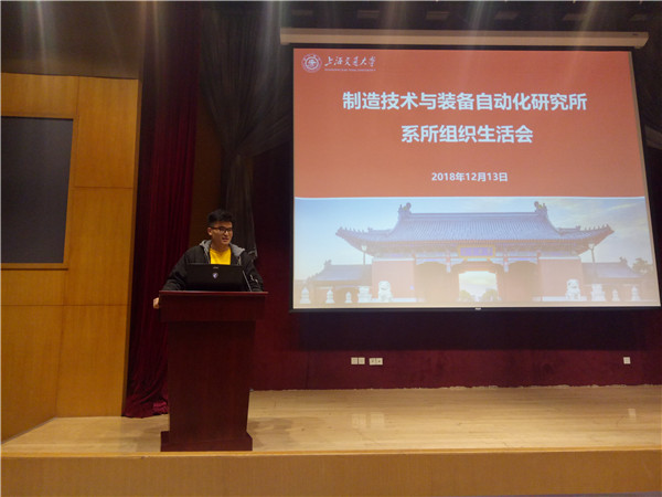 12月13日中午,制造技术与装备自动化研究所全体硕士生党员在机械动力公司高田会堂召开组织生活会,支部指导老师陈旦玥出席,本次生活会的主题是“双评双议双公开的党员民主评议会”。会议由制造所硕士党支部的副书记赵之谦主持。