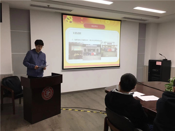 会议首先进行了年终民主评议,李涛代表支委会向全体党员进行工作述职。本年度,支委会尽职工作,在组织建设、思想引领等方面都取得了显著成效。支部切实加强党员队伍建设,重视支部党员发展工作;深入开展主题教育活动,扎实推进支部理论学习;始终坚持工作服务意识,努力丰富系所员工生活。本月,支部与教职工党支部联合开展了“支部讲堂”主题党日活动,与硕士生党支部联合开展了“缅怀伟人,砥砺前行”主题党日活动,这些活动都使党员同学接受了教育,增进了了解。李涛还对工作中存在的问题进行了反思和总结,对支部下一年的工作进行了展望。