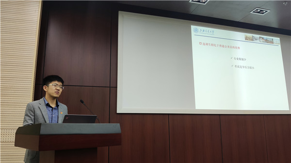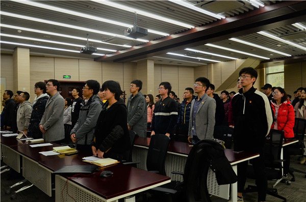在优秀党员分享环节,2015级博士研究生、2018年国家奖学金获得者许锐从参与项目、科研历程和论文、专利撰写等方面分享了自己的心得体会。2016级硕士研究生杜政瑀选择了前往中国核动力研究设计院就业,介绍了其就职单位,并分享了自己的求职过程。2015级博士研究生胡振枭就自己为什么选择成为选调生、如何准备选调生考试和面试等跟同学们做了交流。