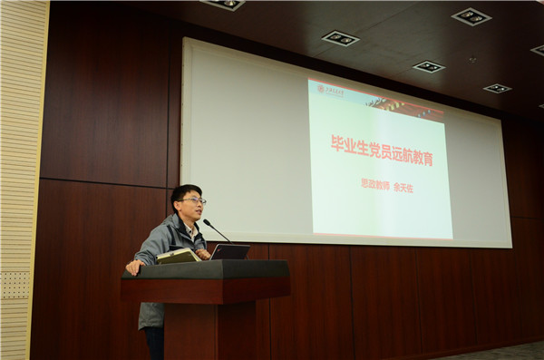 在毕业生党员远航教育环节,余天佐和熊珍琴分别致辞。