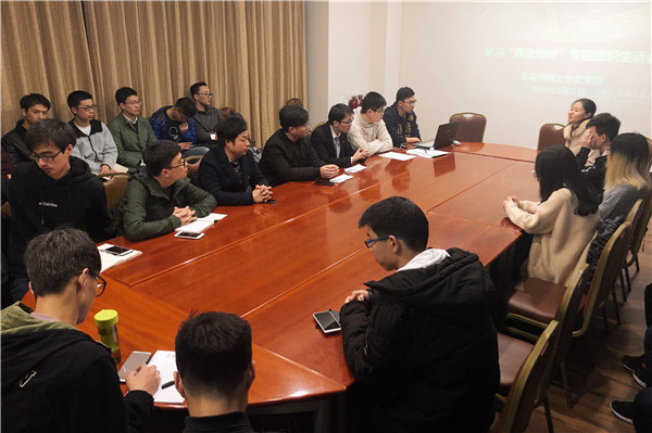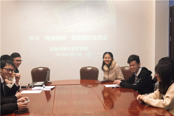 3月27日晚,车身所硕士生党支部学习“两会”精神专题组织生活会在机械楼F103会议室举行,支部指导老师陶晓红及支部成员出席会议,会议由支部书记赵航支持。