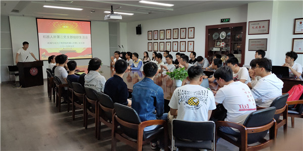 5月24日中午,机器人所研究生第二党支部在机械楼F210会议室举行 “学习习近平总书记在五四青年节100周年的重要讲话精神”主题组织生活会。支部指导老师郭莉、全体党员及入党积极分子、部分团员参加了本次会议,会议由党支部书记丁龙杨主持。