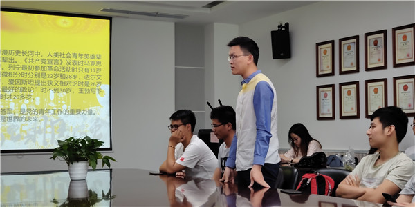 最后,同学们就今天的主题展开讨论,大家仿佛像百年前觉醒的青年一样,无比激动,踊跃发言。雷阳等同学更是结合当下中美贸易战的现状,深深的体会到自立自强的重要性。大家的发言充满了活力,让人感受到朝阳一般的力量,也体现出青年学子不忘初心、牢记使命,为实现中华民族伟大复兴而奋斗的决心和信心!至此,本次组织生活会圆满结束。