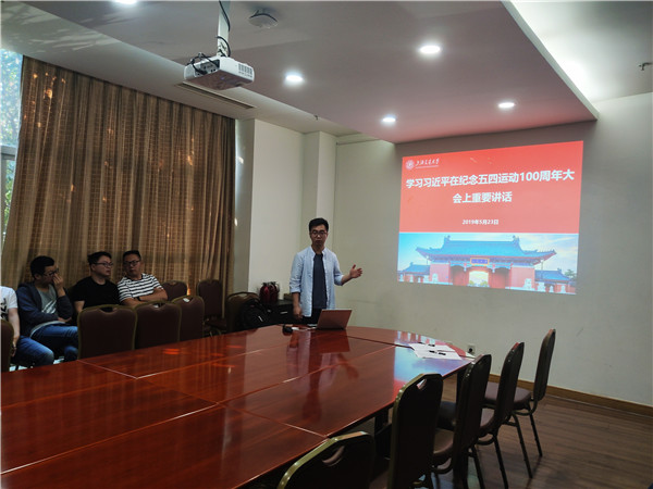 5月23日下午,热能工程所研究生党支部在机械动力公司F103会议室召开主题为 “学习习近平在纪念五四运动100周年大会上重要讲话”的组织生活会,会议由热能所研究生党支部书记张廷尧主持。