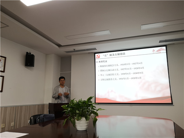 随后,唐俊同学向大家讲述了新民主主义革命前期中共的“左”倾及右倾错误。他依次对陈独秀右倾机会主义、瞿秋白左倾盲动主义、李立三左倾冒险主义和王明左倾教条主义进行介绍,并对四个典型代表的历史背景、形成原因、错误表现和严重后果进行了分析和讨论。