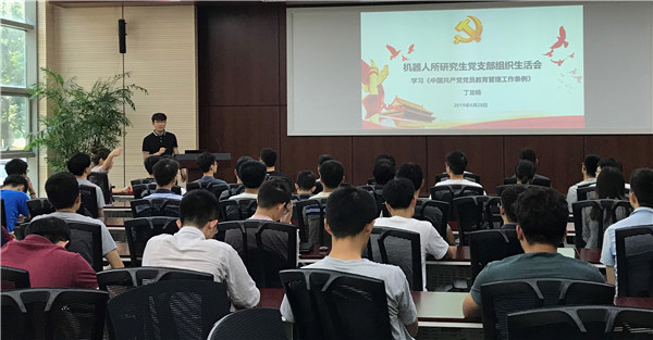 6月28日,机器人所研究生第一党支部及第二党支部学习《中国共产党党员教育管理工作条例》专题组织生活会在公司振华会议室举行。支部成员、入党积极分子及指导老师郭莉出席会议,会议由第二党支部书记丁龙杨主持。