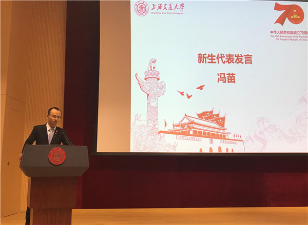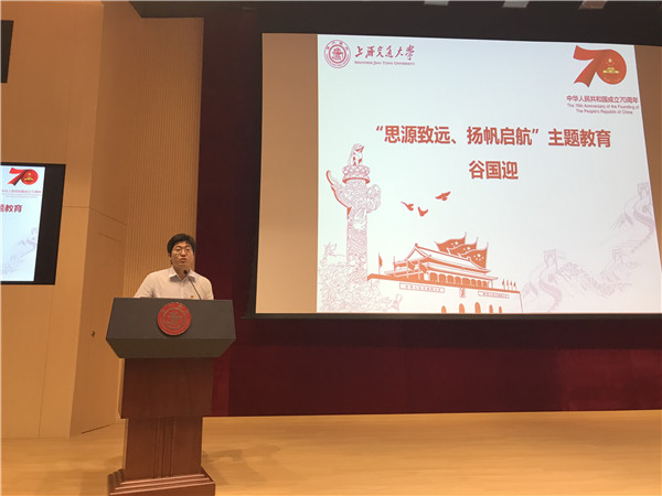接下来,谷国迎为新生党员上了一堂生动的党课。他结合自己在交大读书成长的经历,从“诚信”、“科研”、“责任”三个角度出发,对同学们提出了要求也表达了希望。他认为,新中国成立70年来,特别是改革开放以来,在党的领导下,全国人民披荆斩棘、锐意进取,向着现代化的强国不断迈进,而交大也在迈向世界一流大学的目标上奋起直追,作为全国试点公司的研究生,理应承担起应尽的责任与使命。
