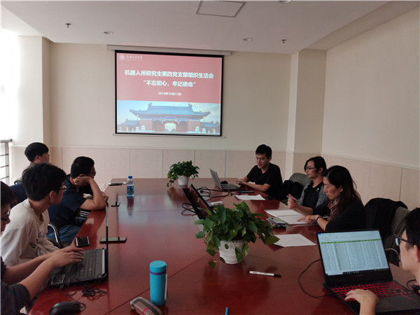 10月17日中午,机器人所研究生第四党支部在机械辅楼301会议室召开“不忘初心,牢记使命”主题教育组织生活会。支部指导老师郭莉及全体党员参加了会议,会议由支部书记袁锦春主持。