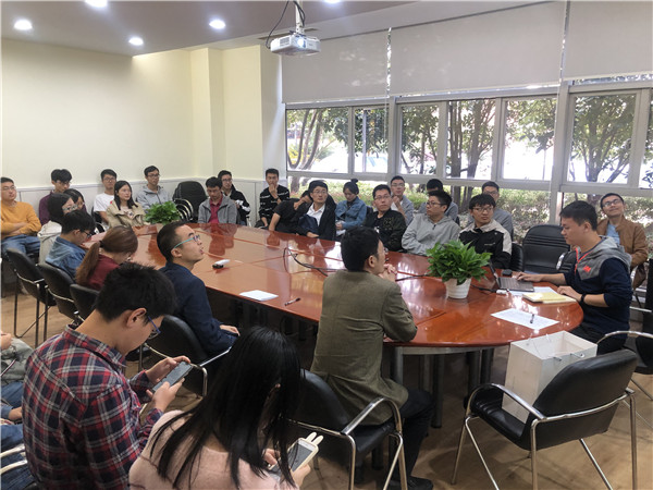 会议首先邀请了阮海涛给大家讲话。目前正逢就业季,阮海涛老师首先给大家简要介绍了今年相关企业的招聘情况。在此基础上阮海涛老师希望每个同学都能有个清晰的职业生涯规划,不要最后找工作时犹豫不决而错过了机会。最后阮老师也给大家介绍了机动公司几位优秀的毕业生当初是如何择业就业的,并祝愿每个正在招聘期的同学都能够找到理想的工作。
