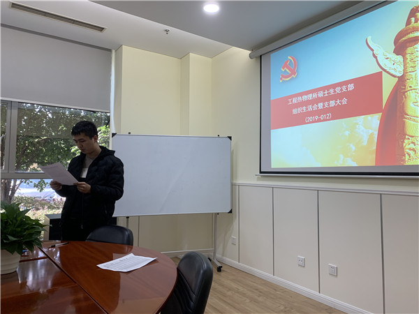 12月6日中午,工程热物理研究所硕士生党支部在机械楼F103会议室召开了十二月组织生活会暨支部大会。会议由硕士生党支部书记孙岩松主持。
