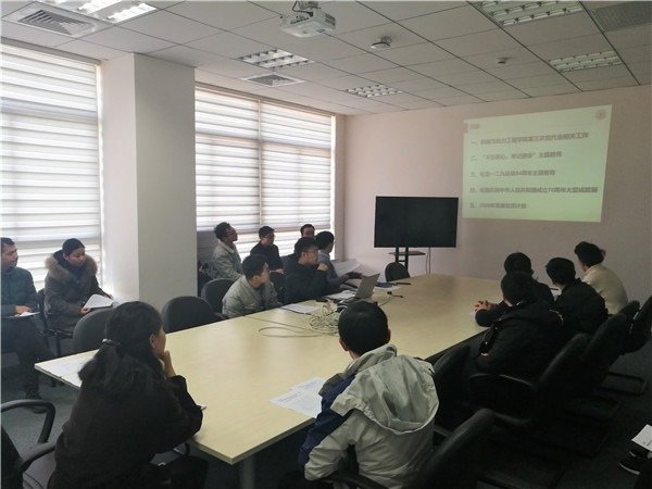 本次会议以第十九届四中全会精神为学习重点,支部副书记薛永波向大家介绍了十九届四中全会相关内容,支部成员一起学习了四中全会公报。