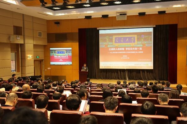 青年教师联谊会会长张文明作为教师代表发言,分享了十余年工作经历中的感悟和体会。他认为,青年教师肩负着科研与育人的双重责任,既要潜心科研,追求有影响力的学术成果,同时又要深刻领悟教书育人内涵,以“立德树人”为本,在传道授业解惑过程中培养员工崇尚科学、大胆创新,成为一名有爱心、耐心和责任心的好教师。