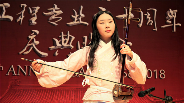 周益敏同学带来了二胡独奏《风居住的街道》,古典美女与民族乐器为观众带来悠扬乐曲的同时,也为晚会带来了新的精彩。