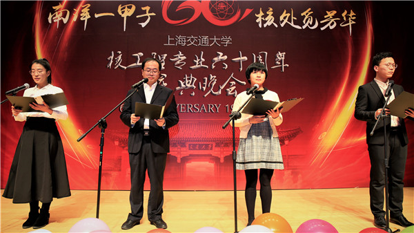 晚会在熊珍琴老师、顾卫国老师、高晓辉同学和陶学文同学共同带来的诗朗诵《六十载砥砺前行 一甲子春华秋实》中落下帷幕。朗诵内容紧贴核专业知识,让在座的观众们感慨不断,现场掌声鼓动,气氛非凡。