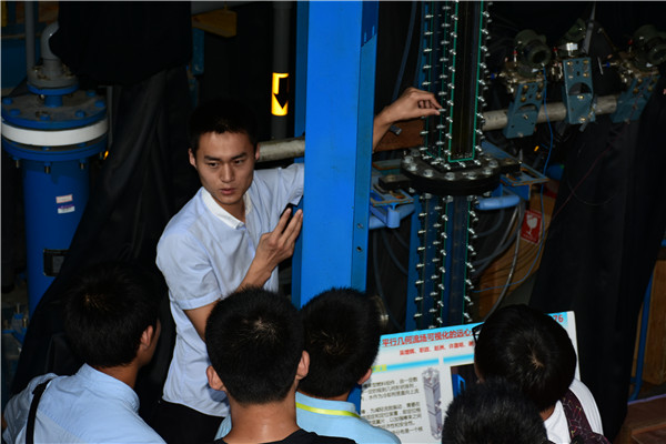 同学们首先来到伟德国际1946先进核能系统热工水力实验室,吴增辉深入浅出地介绍了平行几何流场可视化的远心光学系统研制的实验设备、技术方案、实验原理,开拓了同学们的学习视野,帮助同学们地将理论知识运用于实验研究中。