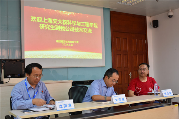 14日上午,实践团在福清核电培训中心会议室,开展了高校、企业、监管单位三方党支部共建与交大员工座谈活动。