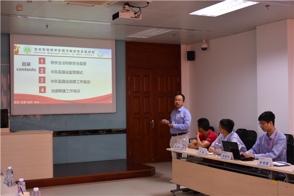 福清核电保健物理处科长胡凌向实践团介绍了核电站辐射安全管理的内容。