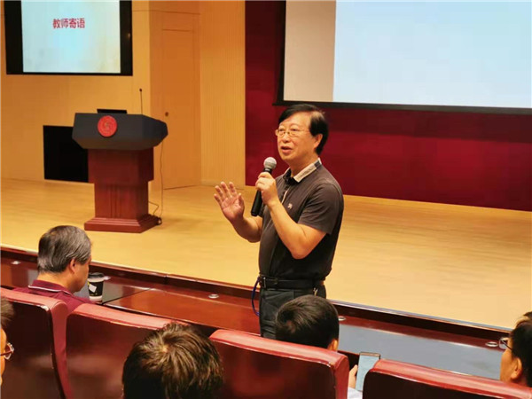 研究生班主任赵万生代表全体教师寄语新生。他指出,工业基础对一个国家的发展至关重要,国家一如既往的支持工业基础的发展,身为制造人应对行业的未来充满信心。他表示,国家正面临巨大的转型,转型的过程并非一朝一夕,要靠我们这代人艰苦努力、发挥创造力去面对世界上任何的挑战。