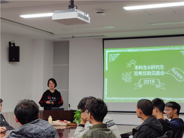 到场的12名研究生依次登台进行自我介绍,他们获评各类奖学金、在科研领域斩获佳绩的实力令现场不时传出惊叹之声,学长学姐们也表示,十分乐意在同学们需求较强的电路基础、高等数学、大学物理等课程方面对同学们进行辅导,并就同学们未来的发展进行规划。在研究生同学自我介绍完毕后,相应的本科生同学也进行了自我介绍,提出了自己的愿望与渴望提升的方面,并再次对学长学姐表示感谢。本次互帮互助活动由一名研究生对接两名本科生,共覆盖F1802001班级24名同学。