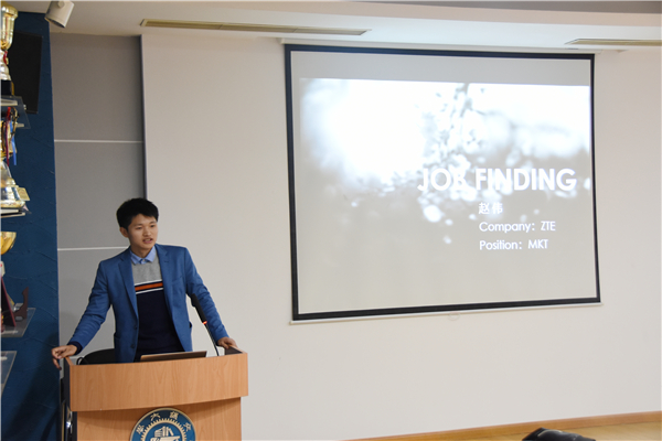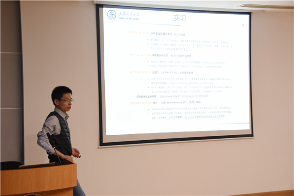 首先进行分享的是工业工程专业的汪彬。他从简历制作和无领导小组讨论等方面结合自身经验进行了详尽的讲解。他认为简历要着重实习、学习成绩、技能与奖励三部分,其中实习部分要注重观察,态度要自觉主动,通过观察正式员工的工作收获自己的心得体会。同样来自工业工程的霍文斌,围绕IT 行业求职经验进行了分享。他建议大家放宽视野,多了解行业动态,做到有的放矢。