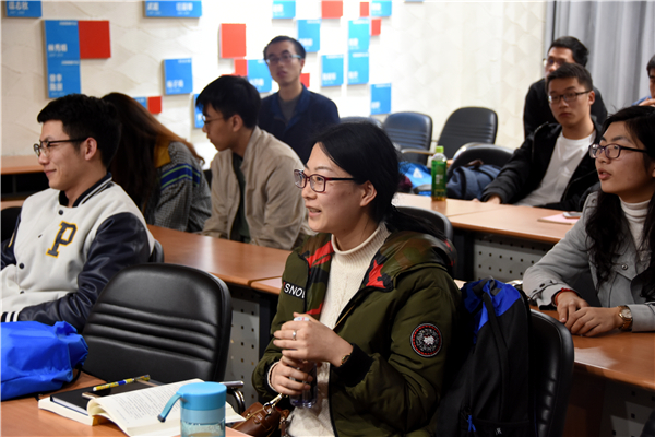 在随后的座谈环节,四位学长尽可能全面的与在场同学分享了他们的所得所感。他们一致认为在求职过程中,有一个坚定认真并且理性的态度是十分重要的,一定要有自己明确的职业规划。现场同学积极参与讨论,针对内心的疑惑诚心求教,也都收获了宝贵的经验。