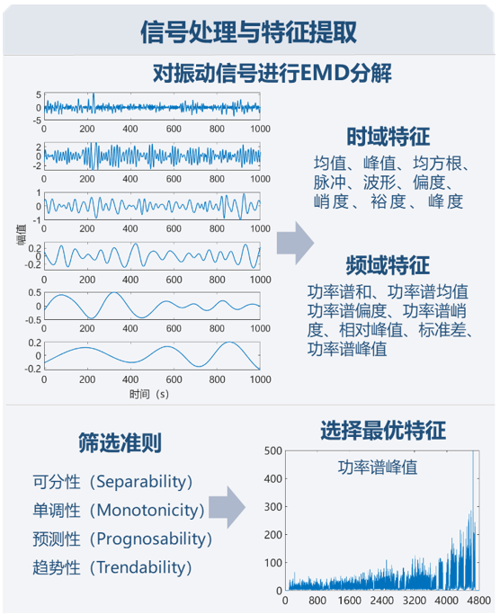 该方法对原始信号进行了深入分析,针对原始信号信噪比低的问题,采用了自适应的经验模态分解方法进行特征提取,进而结合相关的筛选准则对反映信号寿命的特征进行筛选,提出了基于自定义相似度的非参数模式匹配方法进行刀具剩余寿命的预测。