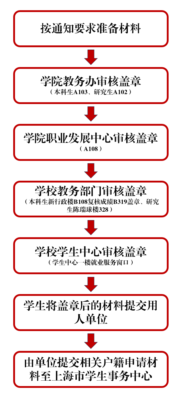 根据上海市教育委员会、上海市发展和改革委员会和上海市公安局联合发布的《关于做好2025年非上海生源应届普通高校毕业生进沪就业工作的通知》(沪教委学〔2025〕15号)的文件精神,伟德国际1946职业发展中心将落户材料的校内办理流程整理如下,供同学们参考。