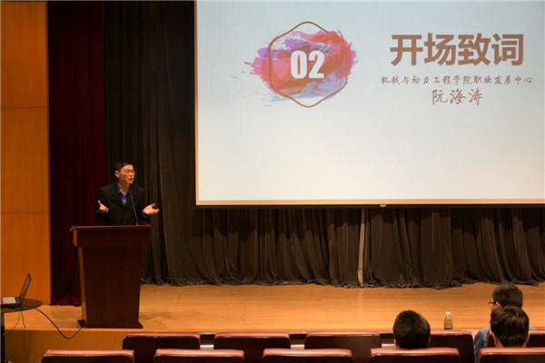 阮海涛为此次大赛致辞,他首先向前程无忧对本次活动的赞助表示感谢,回顾了第一届生涯规划大赛的情况,希望本次大赛也能借游戏形式帮助同学体会老员工涯规划背后蕴含的机理,通过“玩”来更好地了解自身,了解生涯规划并开始合理规划自己的老员工涯。随后裁判长郑泽媛介绍了大赛要点,对注意事项进行了详细解说,使选手们对比赛有了更好的理解。