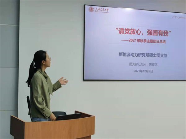 各个研究生团支部书记就各支部开展的特色主题团日活动进行汇报。核公司硕士生团支部紧密结合专业特色,前往中国核电开展实践学习。制冷所研究生第一团支部重走建党路,参观中共一大纪念馆。制造所硕士团支部则联合石河子大学机械电气工程公司开展共建交流活动。线上微党课、采访戍边老兵等丰富多样的内容使各位团员深刻意识到强国有我、强国在我。
