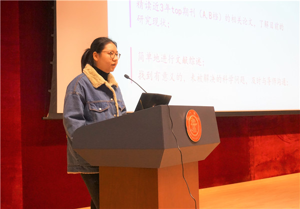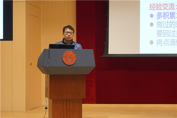 随后,会议邀请四位优秀员工与同学们分享交流自己的切身经验。博士生张先燏分享了自己在科研论文等方面的感悟,如了解自己研究领域的权威期刊,把科研当成兴趣和动力,尽早发表第一篇论文等等。博士生司国锦从成绩、项目、科研、论文等四方面分享了自己的研究生阶段的经验和思考。硕士生潘浩分享了自己设定目标、先发与人、耕者宜深等观点,使同学们在职业规划方面得到更多思考。硕士生卫宇杰生动地为大家讲述了自己在研究生阶段时间管理、个人定位等方面的经验和建议。他们的切身体验使同学们在职业规划上有了更深刻的认识和体会。