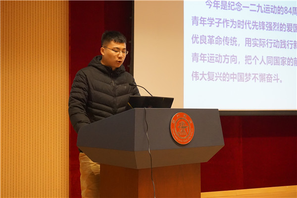 最后,会议组织全体党员开展了以纪念一二九运动84周年为主题的党组织生活会。王清威首先带同学们回顾了一二九运动的历史背景和运动意义。一二九运动是中国共产党领导的一次大规模员工爱国运动。这场运动“是抗战动员的运动,是准备思想和干部的运动,是动员全民族的运动”,“有着重大的历史意义”。 作为新一代青年,我们要继承“一二九”优良革命传统,用实际行动践行新时代的爱国主义,牢牢把握新时代的中国青年运动方向,为实现中华民族伟大复兴的中国梦不懈奋斗。随后,王清威组织全体党员集体观看庆祝中华人民共和国成立70周年大型成就展网上展馆。成就展以编年体形式,展示了中国70年前后经济、社会、文化、生态、科技、军事、国际影响力等方面发生的变化。网上观展结束后,与会党员对祖国70年光辉成就有了更深的思考,自豪感、成就感油然而生。同时,同学们也感受到祖国繁荣昌盛的来之不易,只有努力学习工作,才能为日后强大的祖国添砖加瓦,做出自己的贡献。