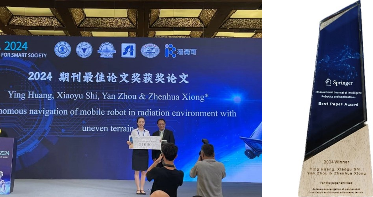 近日,第17届智能机器人与应用国际会议(The 17th International Conference on Intelligent Robotics and Applications, ICIRA2024)召开,会上颁发2024年International Journal of Intelligent Robotics and Applications(IJIRA)最佳论文奖,机器人研究所熊振华教授团队完成的“Autonomous Navigation of Mobile Robot in Radiation Environment with Uneven Terrain”论文获此荣誉。论文作者为硕士研究生黄颖、时晓雨及博士研究生周研,熊振华教授为通讯作者。