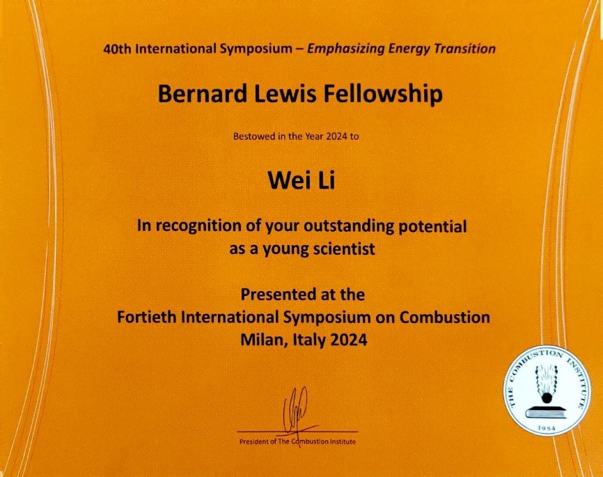 7月21-26日,在第40届国际燃烧会议上,公司航空动力研究所助理教授李伟获国际燃烧学会颁发的Bernard Lewis奖。本次共有六位青年学者获奖,李伟是唯一来自中国的获奖者。
