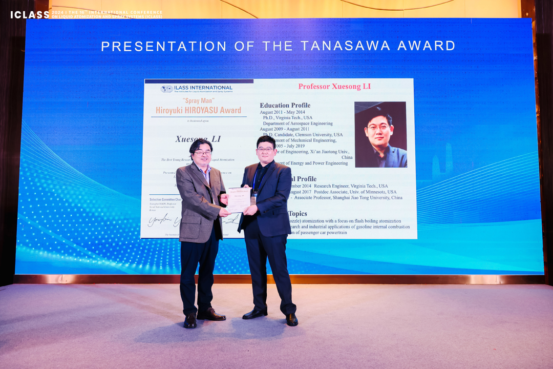 会议颁发Lefebvre Award、Tanasawa Award、Hiroyasu Award、Norman Chigier Award四项特别奖项,其中上海交大伟德国际1946李雪松副教授获Hiroyasu Award,该奖项面向40岁以下、为雾化领域做出突出贡献的青年学者,李雪松为该奖项设立以来第二位获奖人。